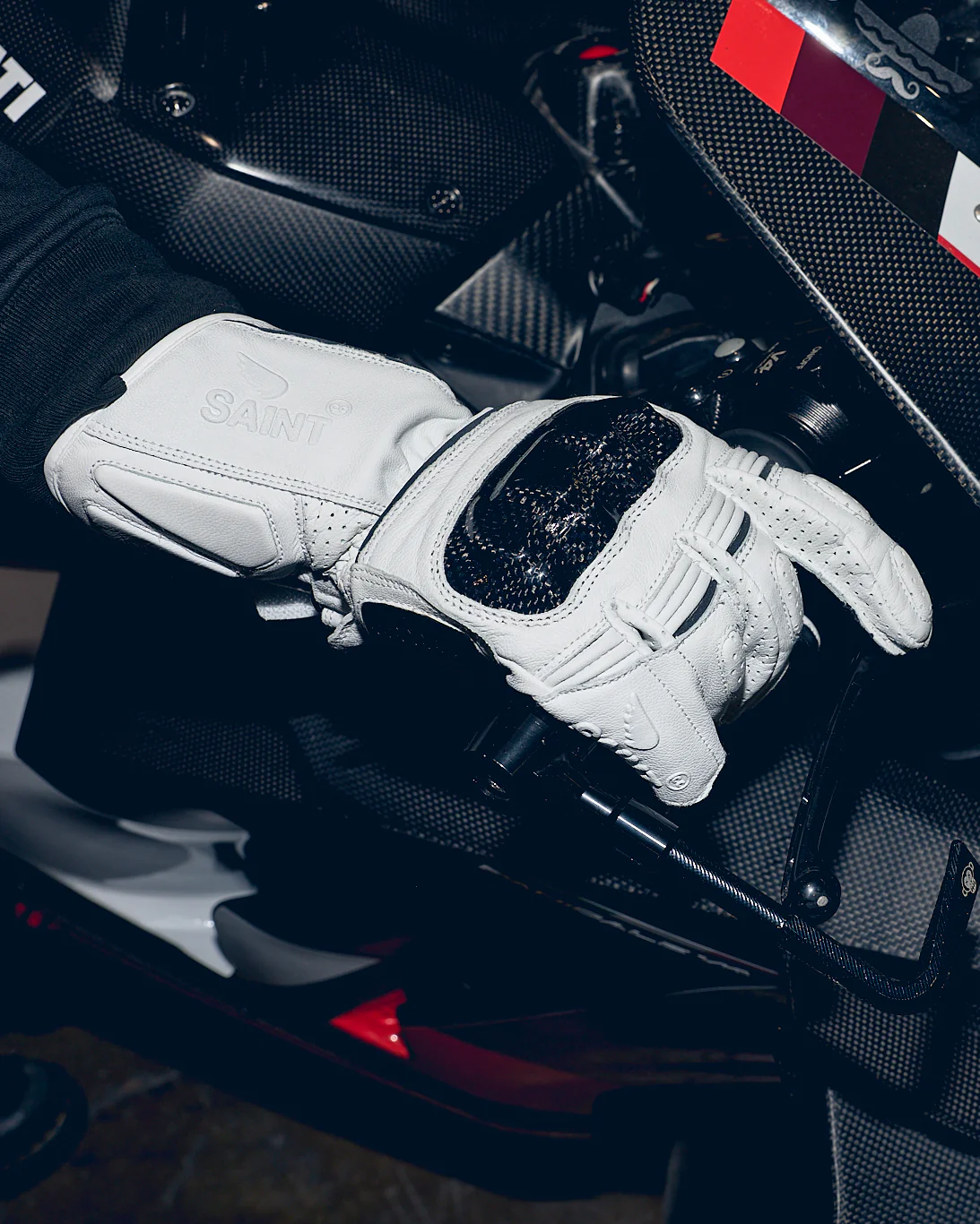 Crafted from premium leather and CE Level 1 certified, these gloves offer a gloss carbon fibre knuckle protection, padded palms, and a timeless fit. Perforated panels enhance breathability, while touch screen compatibility keeps you connected on the go. Reflective piping adds visibility for added peace of mind.