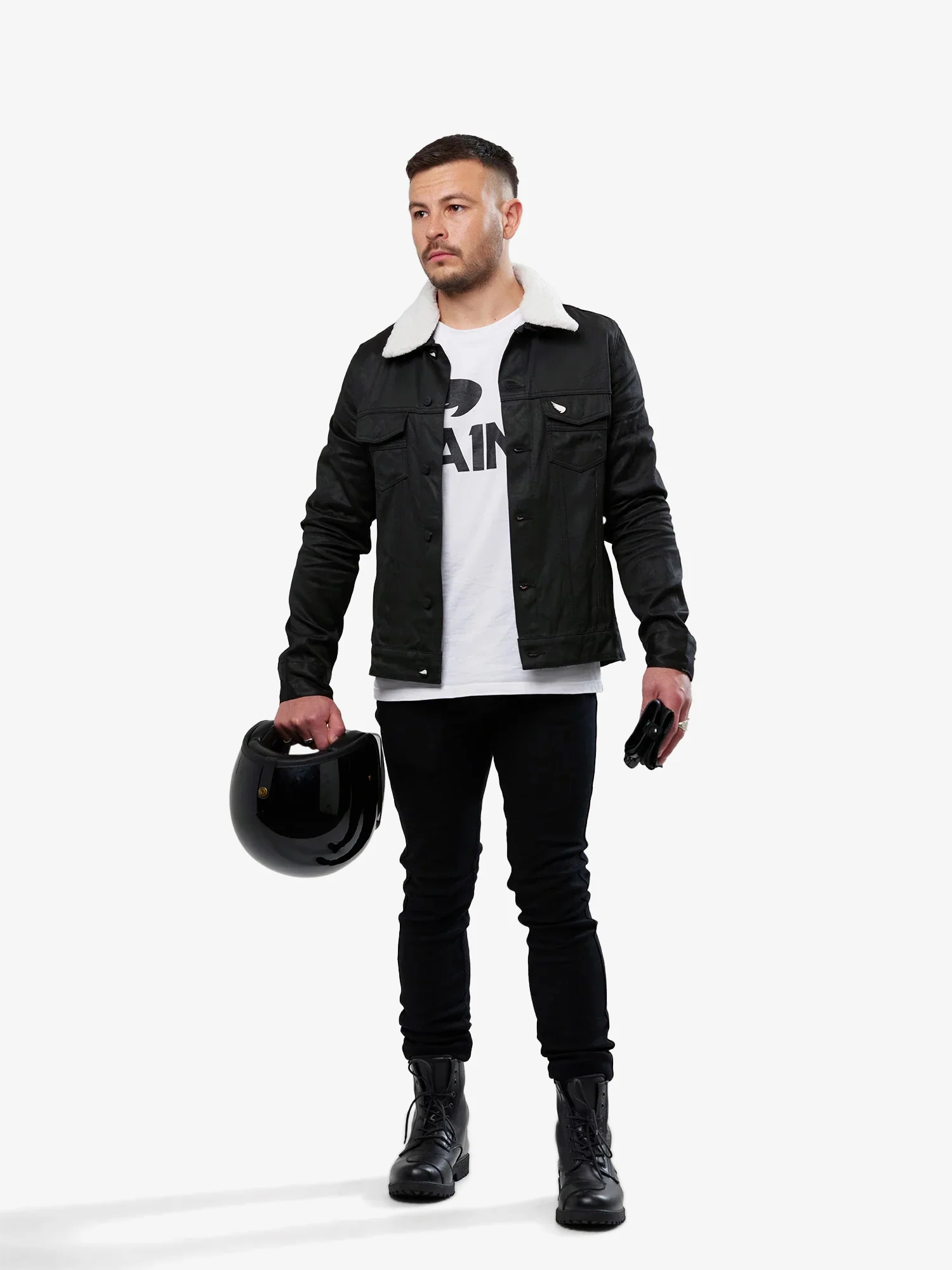 Our Unbreakable denim faux shearling collar jacket is back and more protective than ever. The same classic denim jacket styling, paired with our resilient UHMWPE-blended, black coated fabric now features internal pockets for D30® armour in the back, shoulders and elbows to keep you even safer should things go random.